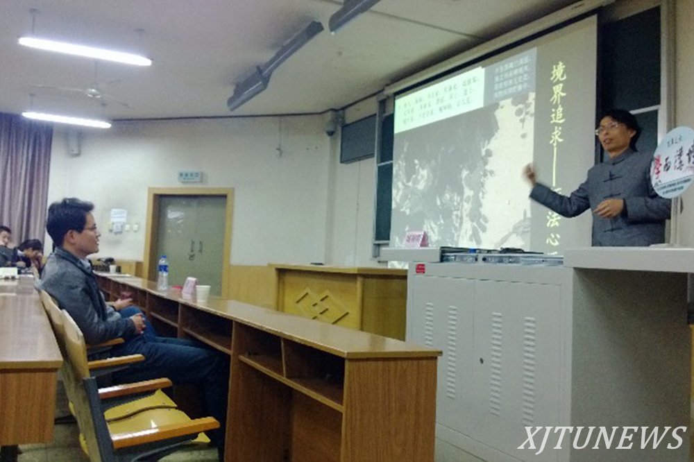 主讲人、人文学院中国画专业周利民教授以解读“境界”开场,点出“人生的境界在于其胸怀”的道理。他谈到,在当今忙碌的“手机时代”,人们是否还愿意抬一抬头,体会国画之意境呢?清黄钺在《二十四画品》中讲到国画二十四境,简单概括来讲便是“逸、神、妙、能”四境,而对于水墨画而言,便是“贲”与“白贲”之别,这与中国古典哲学禅宗修境与悟境不谋而合。这些极具国风的讲述,加上历代名家水墨画作品的现场展示,令同学们惊艳于中国水墨画的魅力。讲座接近尾声时,同学们意犹未尽,纷纷向周老师请教鉴赏水墨画的方法和要素。