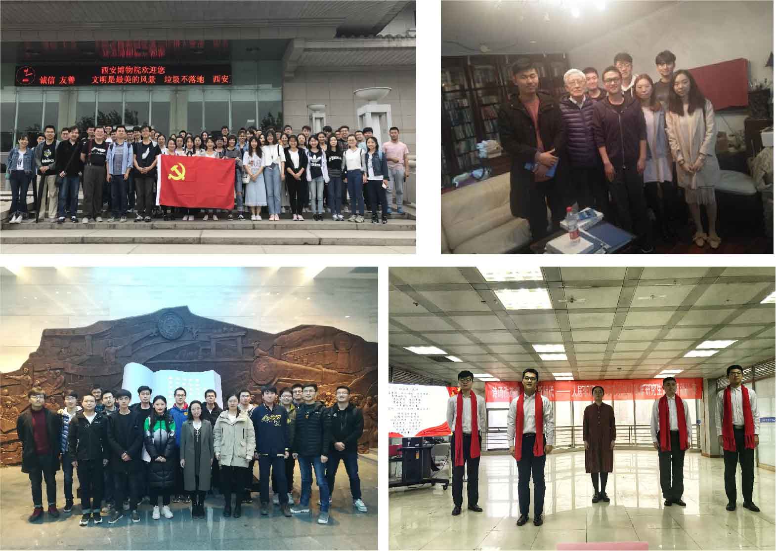 2018年5月,支部牵头组织人居学院一年级研究生前往西安博物院宣讲西迁精神,深入挖掘新时代下西迁精神的含义,提升西迁精神在社会公众中的影响力。2018年11月,党支部组织全体党员集体观看西迁人爱国奋斗先进事迹报告会,体会西迁精神的纯粹,同时还组织党员拜访俞茂宏,陈翰等西迁老教授,聆听前辈的谆谆教诲。2019年2月,支部组织全班同学前往西迁博物馆参观以“弘扬爱国奋斗精神,建功立业新时代”为主题的西迁精神图片实物展,从西迁初心中汲取追梦奋进磅礴力。为纪念改革开放四十周年,支部组织大家集体观看了改革开放40周年纪念大会,同时还在支部内举办了诗朗诵活动。